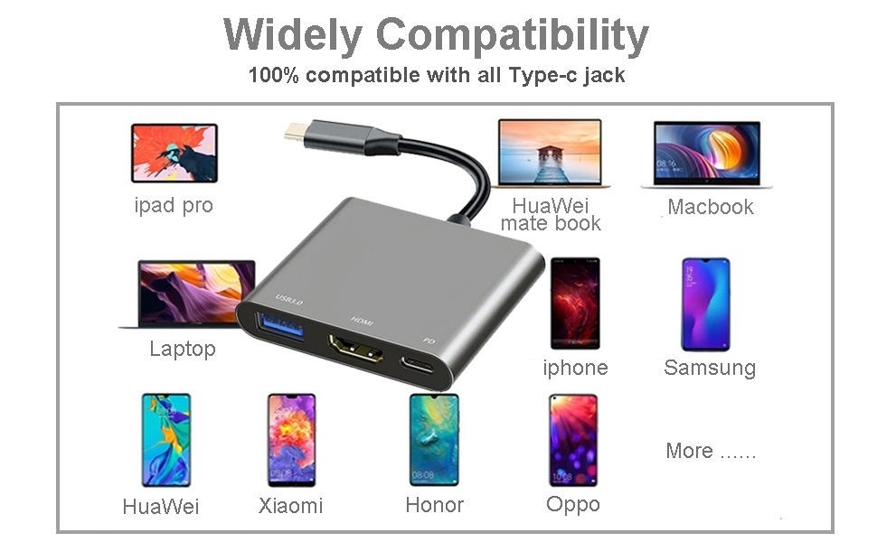Simultaneously connects HDMI 4K display, USB 3.0 devices, and 100W PD charging through single USB-C port.