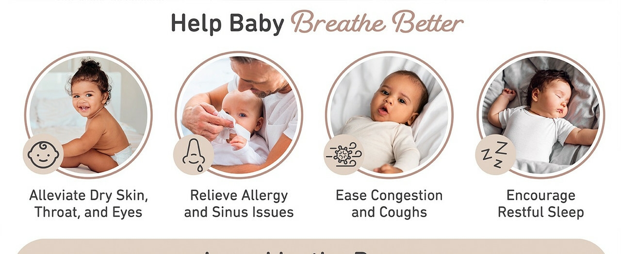 Fonctionne comme humidificateur, purificateur et veilleuse pour chambres, bureaux et chambres de bébé.