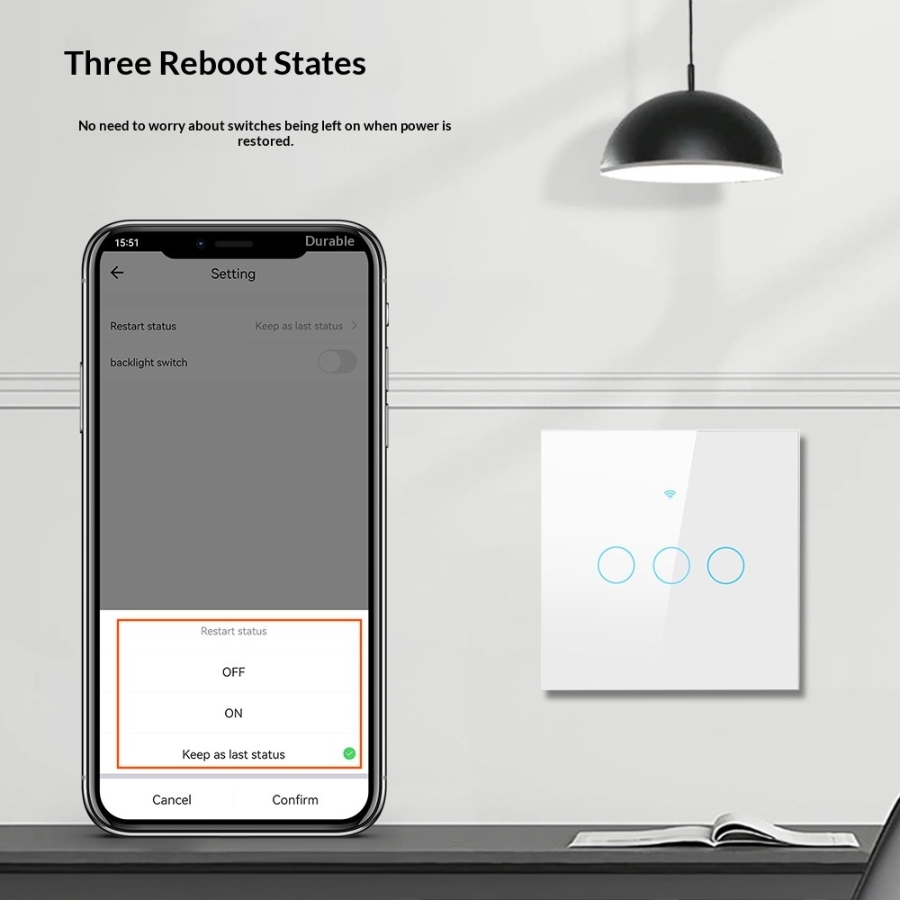 3. Connectivité WiFi : Équipé avec la connectivité WiFi, ce smart For Switch permet une intégration transparente avec les assistants vocaux populaires comme Home, Améliorer votre expérience de maison intelligente.