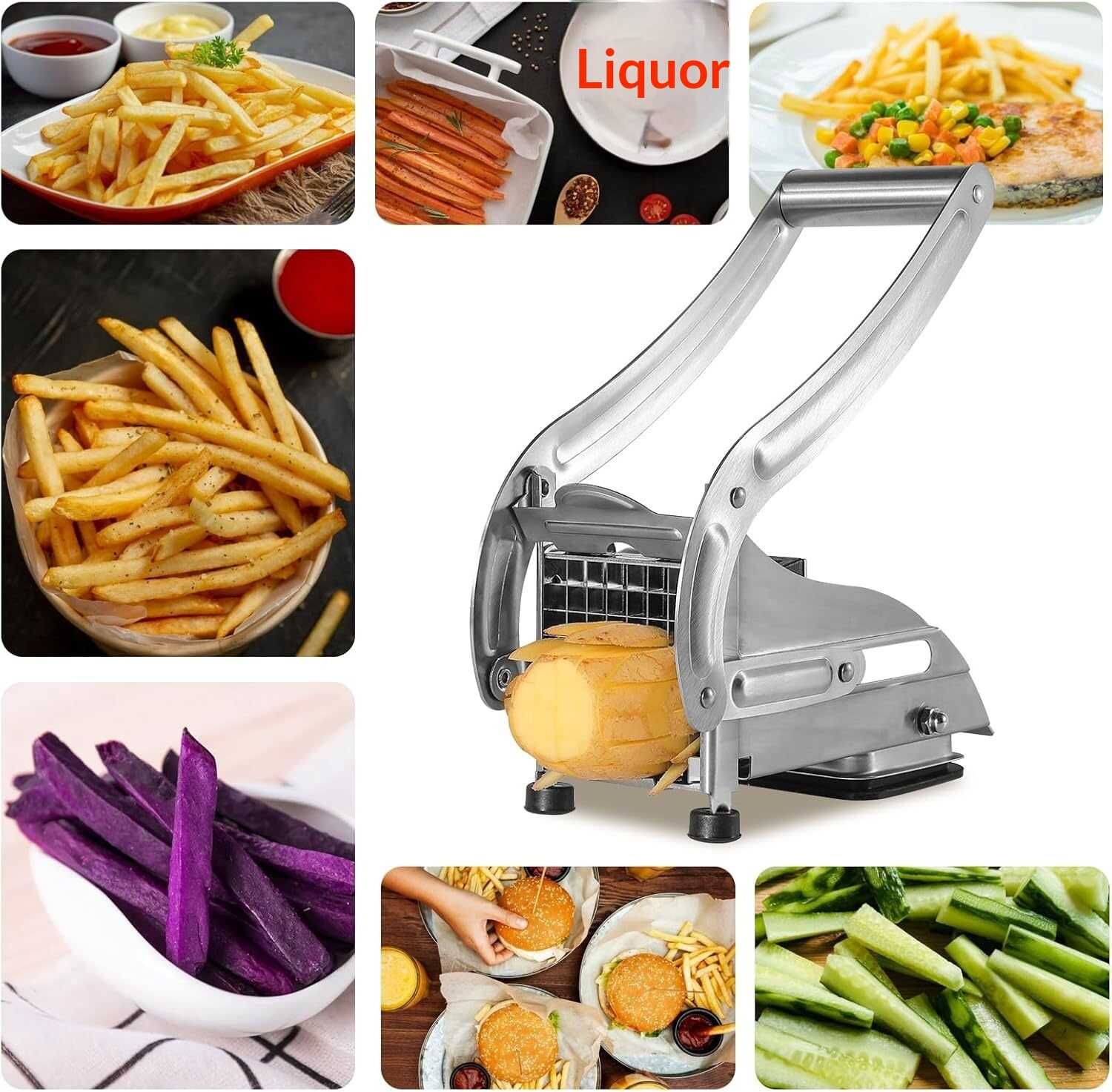 MULTIPURPOSE : Maintenant, vous pouvez obtenir des frites de qualité restaurant à la maison ! Il est livré avec deux lames interchangeables qui coupent parfaitement des morceaux de frites longues de 1 / 2 "épaisseur ou 3 / 8 "épaisseur. Parfait pour couper les pommes de terre et les carottes. Aussi, idéal pour préparer des légumes comme les oignons, les courgettes, les concombres. PAS RECOMMANDÉ POUR LES POTATES DOUXES