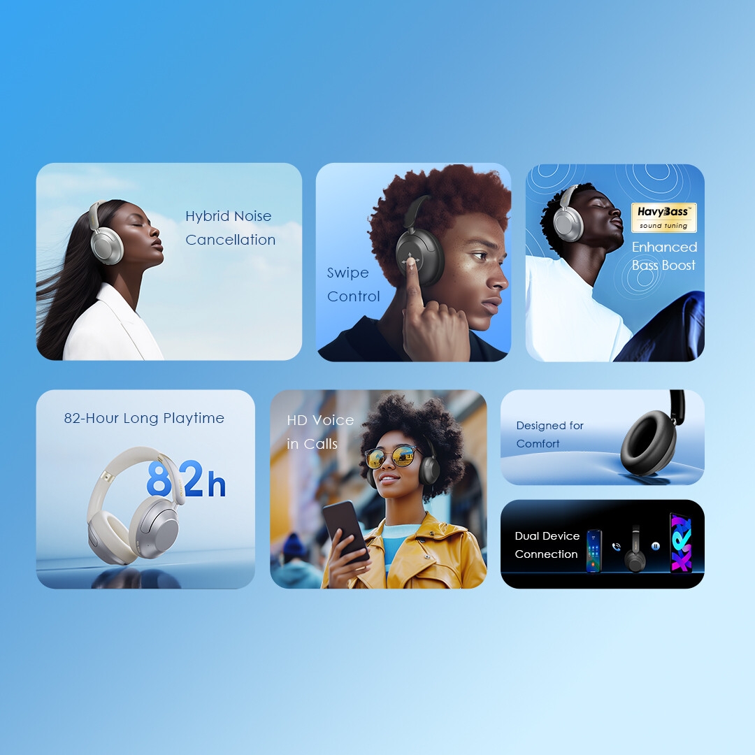 Advanced hybrid noise cancellation technology blocks out distractions, so you can focus on pure sound anytime, anywhere.