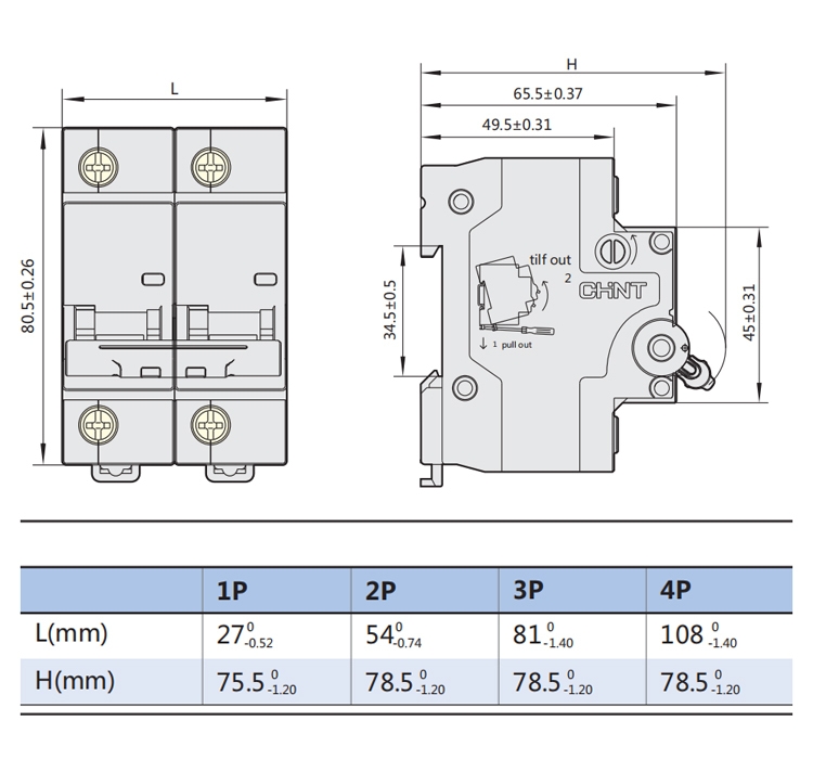 Courant nominal: 16A, 20A, 25A, 32A, 40A, 50A, 63A,80A,100A,125A; Tension nominale: 230V (1P, 1P + N), 230/400V (2 ~ 4P, 3P + N); Fréquence: 50; Type de libération électromagnétique: C Nombre de pôles: 1P, 1P + N, 2P, 3P, 3P + N, 4P; Durée de vie mécanique: 20000 cycles; Vie électrique: 10000 cycles; Capacité nominale de rupture de court-circuit (ric): 6000A Et 10000A(Pour 80A,100A,125A); Capacité de rupture de court-circuit (ci): 6000A Et 7500A(Pour 80A,100A,125A); Tension de tenue à impulsion nominale (Uimp): 4kV; Consommation d'énergie sur chaque pôle du disjoncteur: voir le tableau 1.