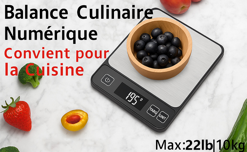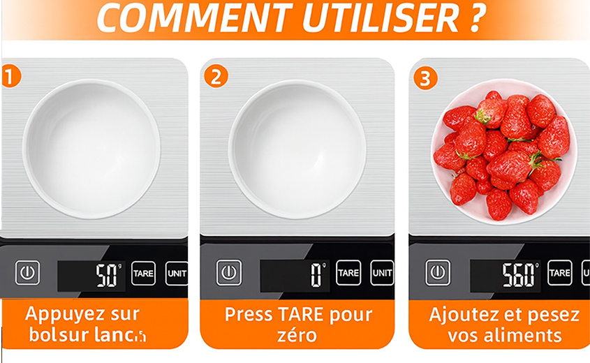 Remarque : Placez la balance sur une surface plane et laissez-la se stabiliser avant utilisation.