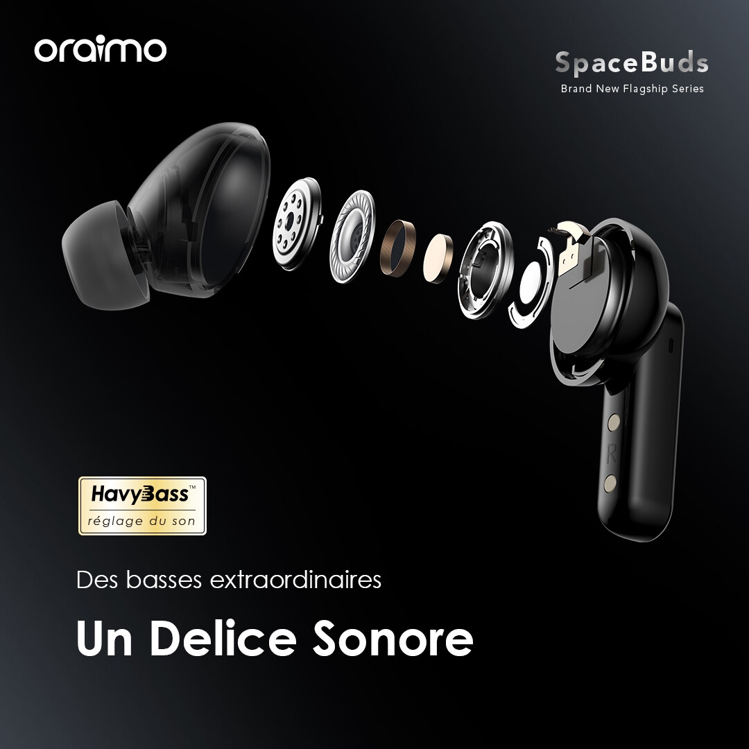 Équipés d'un total de 4 microphones et d'un algorithme de réseau neuronal profond d'IA, les SpaceBuds peuvent transmettre votre voix clairement à d'autres personnes, même dans des environnements bruyants, que ce soit à la maison ou en déplacement, et couvrir des distances avec un son de qualité supérieure.