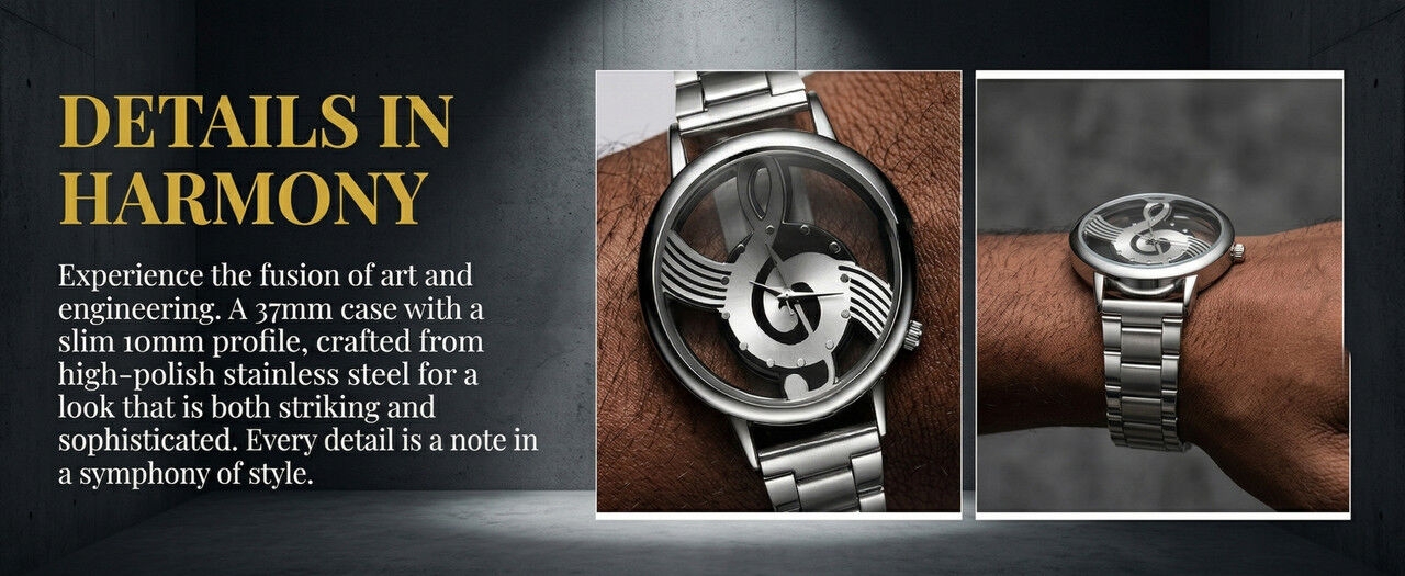 Montre Hollow Music Symbol Pour Hommes - Argent