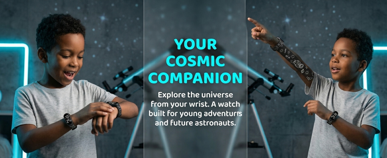 3. La bracelet noire durable avec des illustrations amusantes de l'espace est confortable à porter toute la journée, parfaite pour le mode de vie actif des enfants.