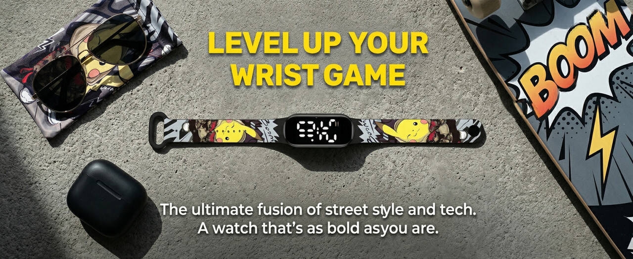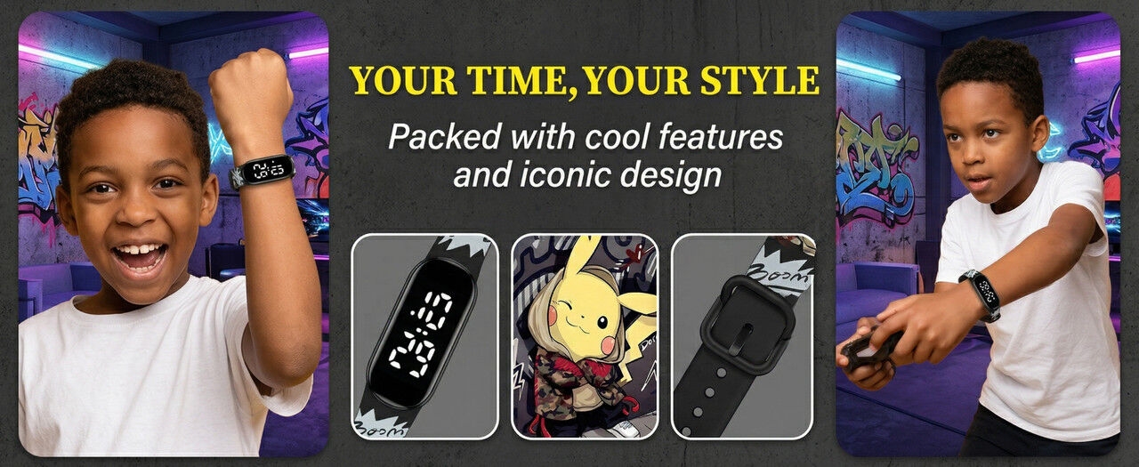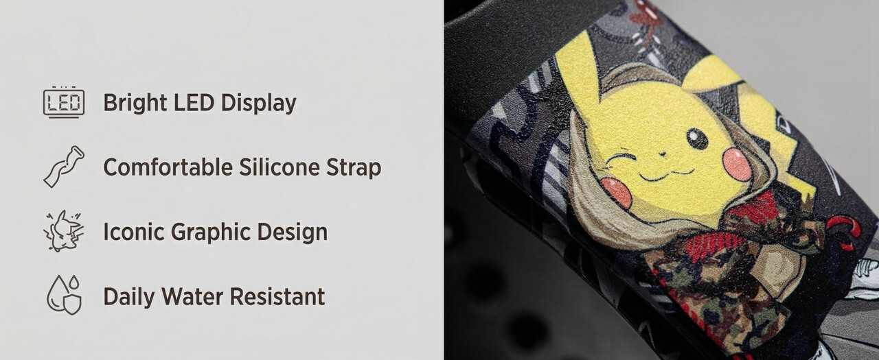5. Que ce soit comme un accessoire quotidien ou un cadeau pour les petits amateurs de Pokémon, cette montre LED Pikachu allie style, praticité et plaisir d’enfance.