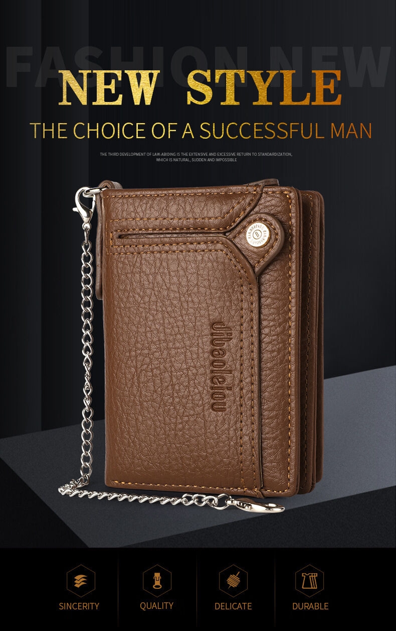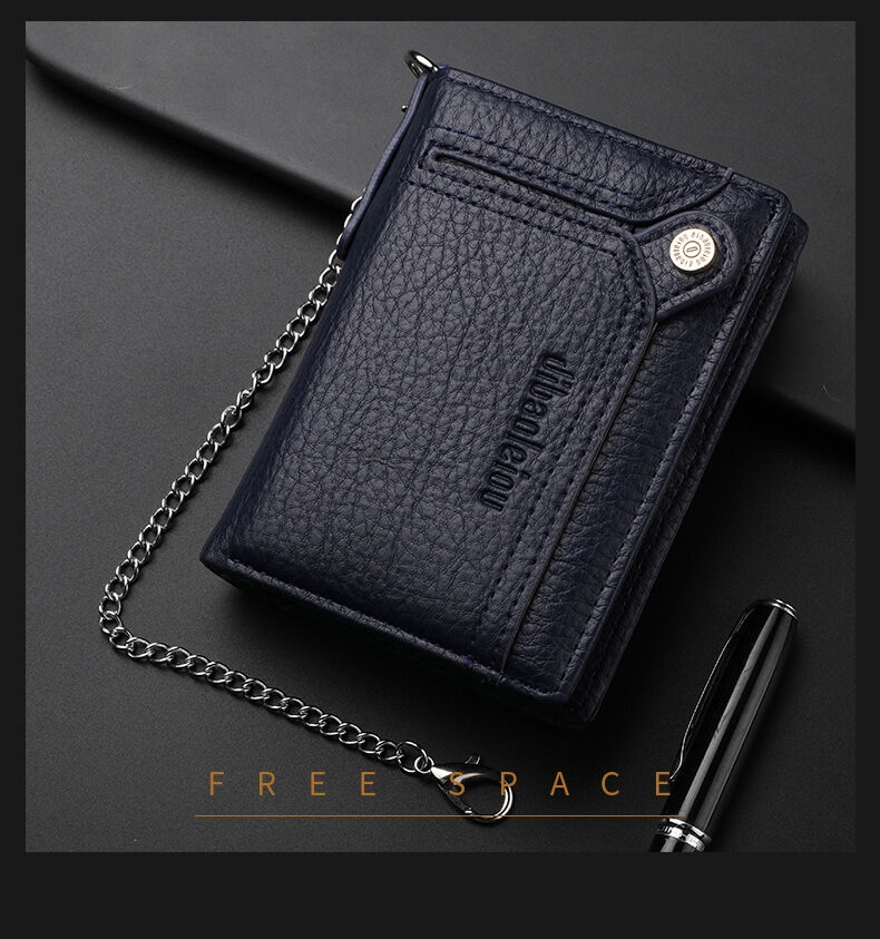 [Security, Privacy, Safety] shielding prevents unauthorized scanning of personal information, protecting you from electronic theft and keeping you safe anytime, anywhere. The leather men's wallet features an anti-theft chain to prevent theft; the chain can be removed via a clasp. Lightweight and slim design.