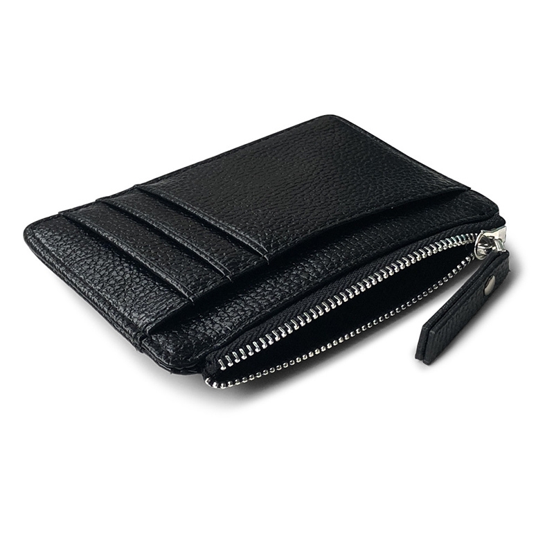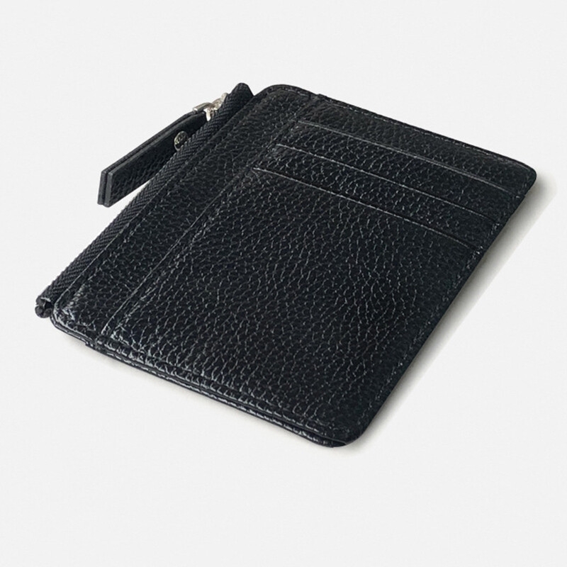 Mini porte-cartes zippé motif litchi, porte-monnaie, porte-cartes d'identité, porte-cartes bancaires, organiseur de crédit, petit, fin et ultra-fin.