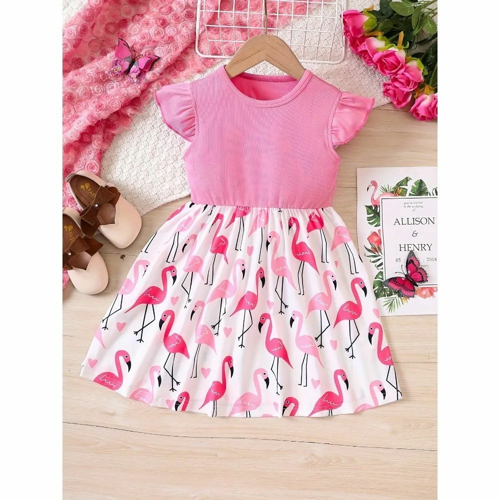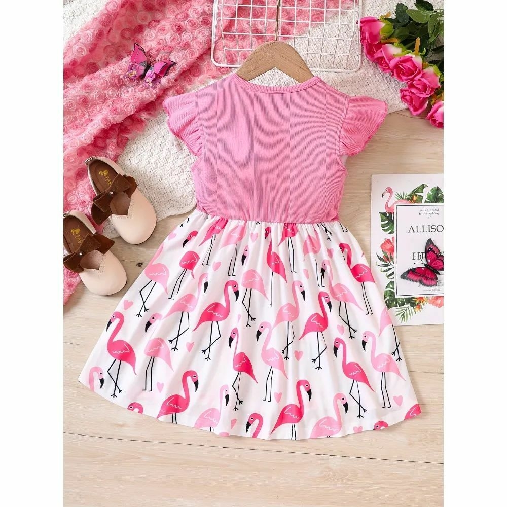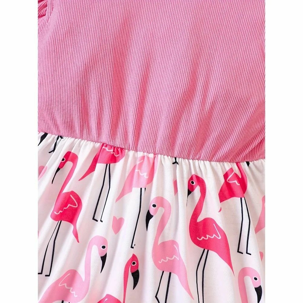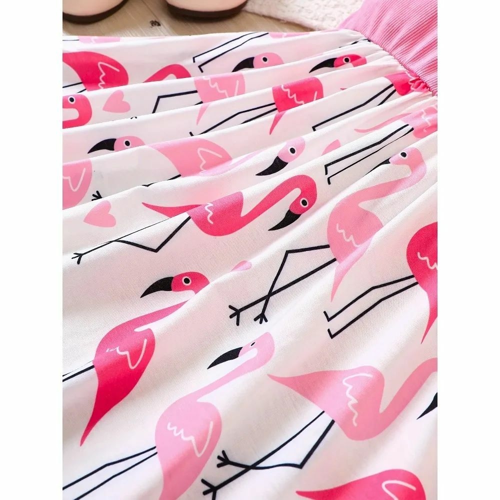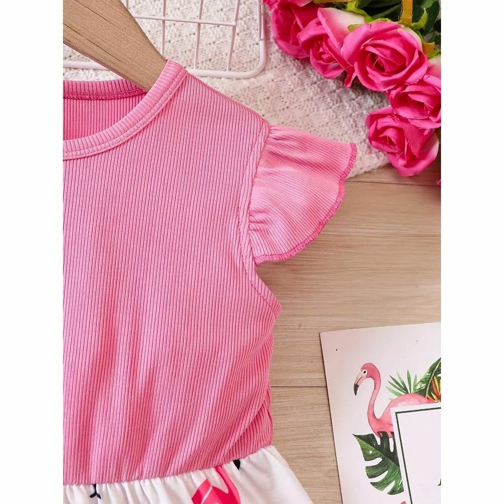 Nom : Jupe élastique à manches volantes flamant rose