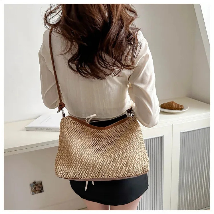 ✔ Notre sac bandoulière de plage décontracté allie style et fonctionnalité. Confectionné en paille, il offre un look tendance et convivial.
