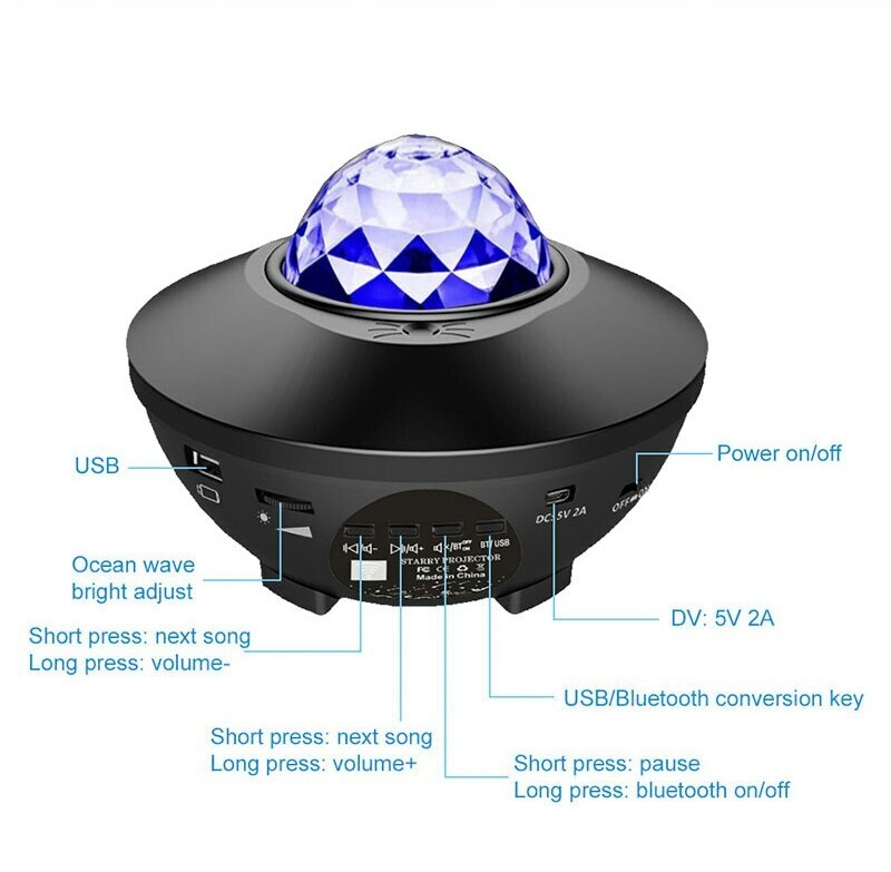 -- Fonctions: projecteur LED, haut-parleur de musique, Bluetooth, télécommande
