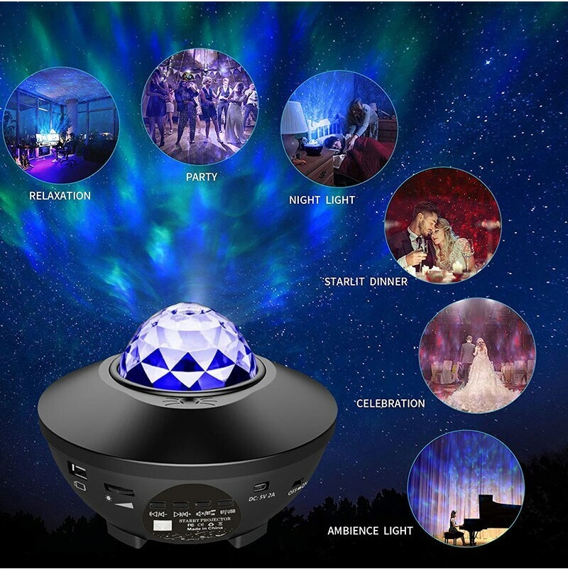 【Cadeaux pour la famille et les enfants】-La veilleuse à projecteur d'étoiles convient aux anniversaires, aux fêtes, aux mariages, à la décoration de la chambre, à la fête des enfants, à Noël, aux cadeaux d'anniversaire, il crée une atmosphère merveilleuse et étoilée aide les enfants à stimuler leur curiosité, leur imagination, leur créativité. Aussi parfait pour la décoration intérieure comme projecteur de vagues océaniques, lumière d'ambiance romantique, lampe de nuit et lampe de chevet.
