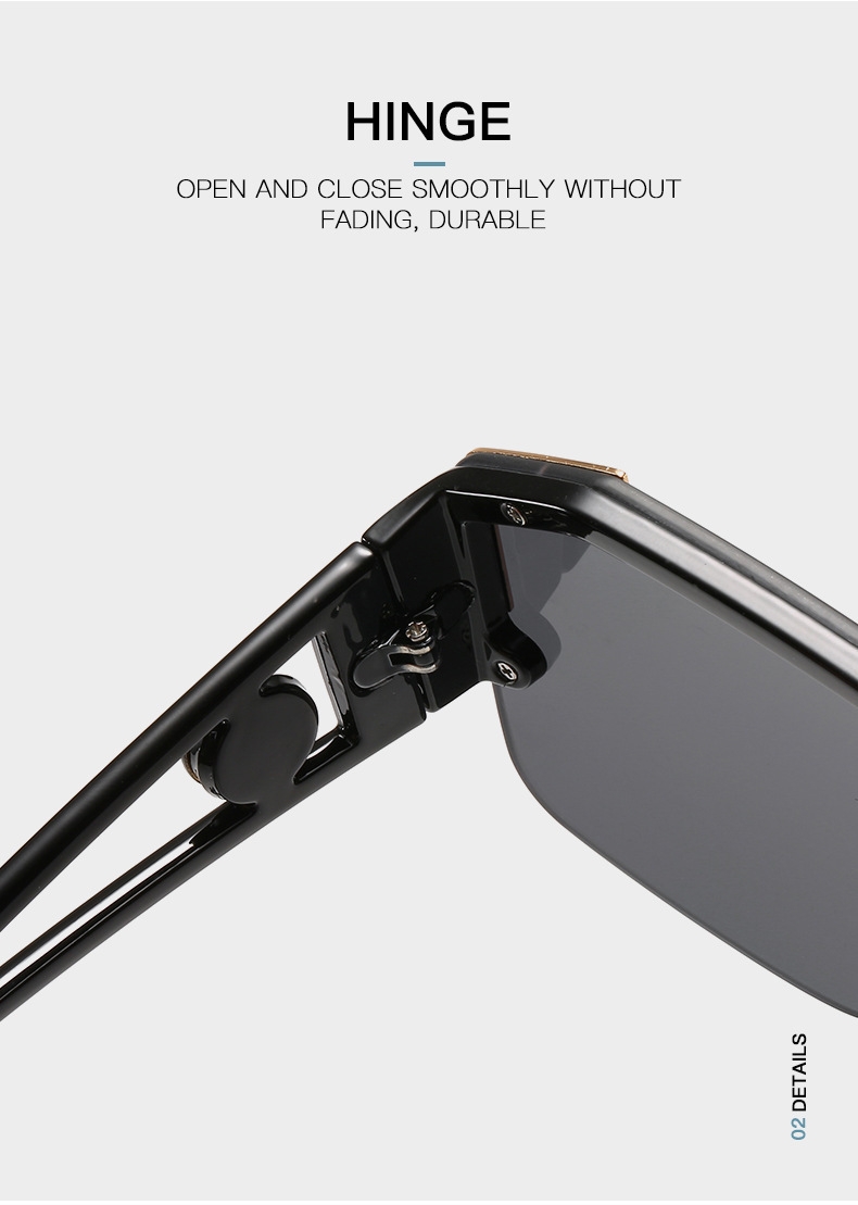2. Bande métallique colorée : une bande décorative en métal doré est intégrée sur le dessus de la monture, contrastant avec le noir principal, rompant ainsi la monotonie et apportant un style « futuriste et rétro moderne » à la photo.
