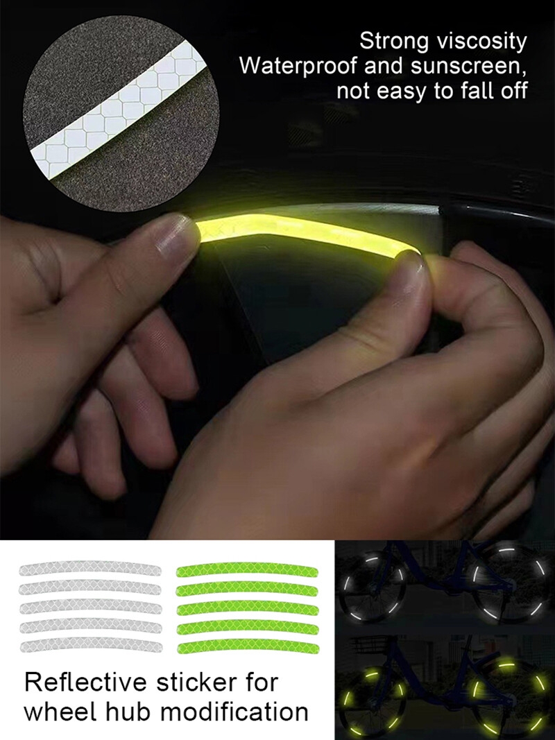 1. Autocollants réfléchissants pour moyeu de roue : la nuit ou dans un environnement sombre, ces autocollants réfléchissants haute visibilité se détachent sur la route, réfléchissent la lumière vers les conducteurs, perceptibles et leur rappellent de garder leurs distances, améliorent la sécurité de conduite.