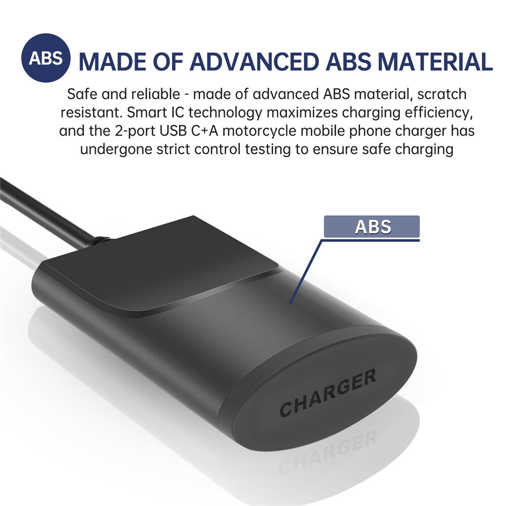 【Chargeur rapide double port USB pour moto】Ce chargeur USB pour moto dispose de deux ports de charge, dont un port Type-C et un port Quick Charge 3.0, pour charger facilement deux smartphones ou tablettes simultanément. Compatible avec, entre autres, iPhone, Samsung, Note, LG et Google, etc.