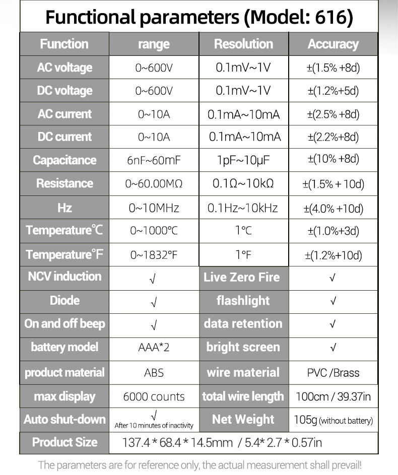 616 multimètre grand écran à affichage numérique LCD intelligent, testeur de courant et de tension AC et DC outil de test d'électricien à diode ohmique électrique - anti-brûlure