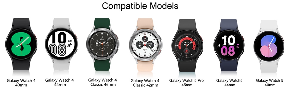 Ce bracelet est uniquement compatible avec Samsung Galaxy Watch 4 40mm 44mm/Galaxy Watch 4 Classic 46mm 42mm/Galaxy Watch 5 40mm 44mm/Galaxy Watch 5 Pro 45mm, ne convient pas aux autres montres connectées