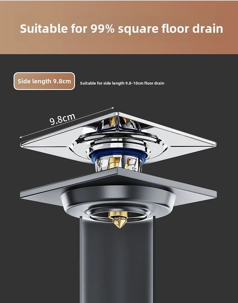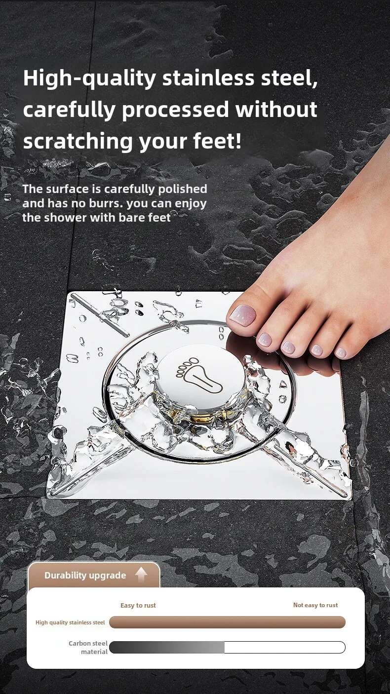 ✔ Le siphon de sol carré permet une évacuation efficace de l'eau, même sous forte pression.