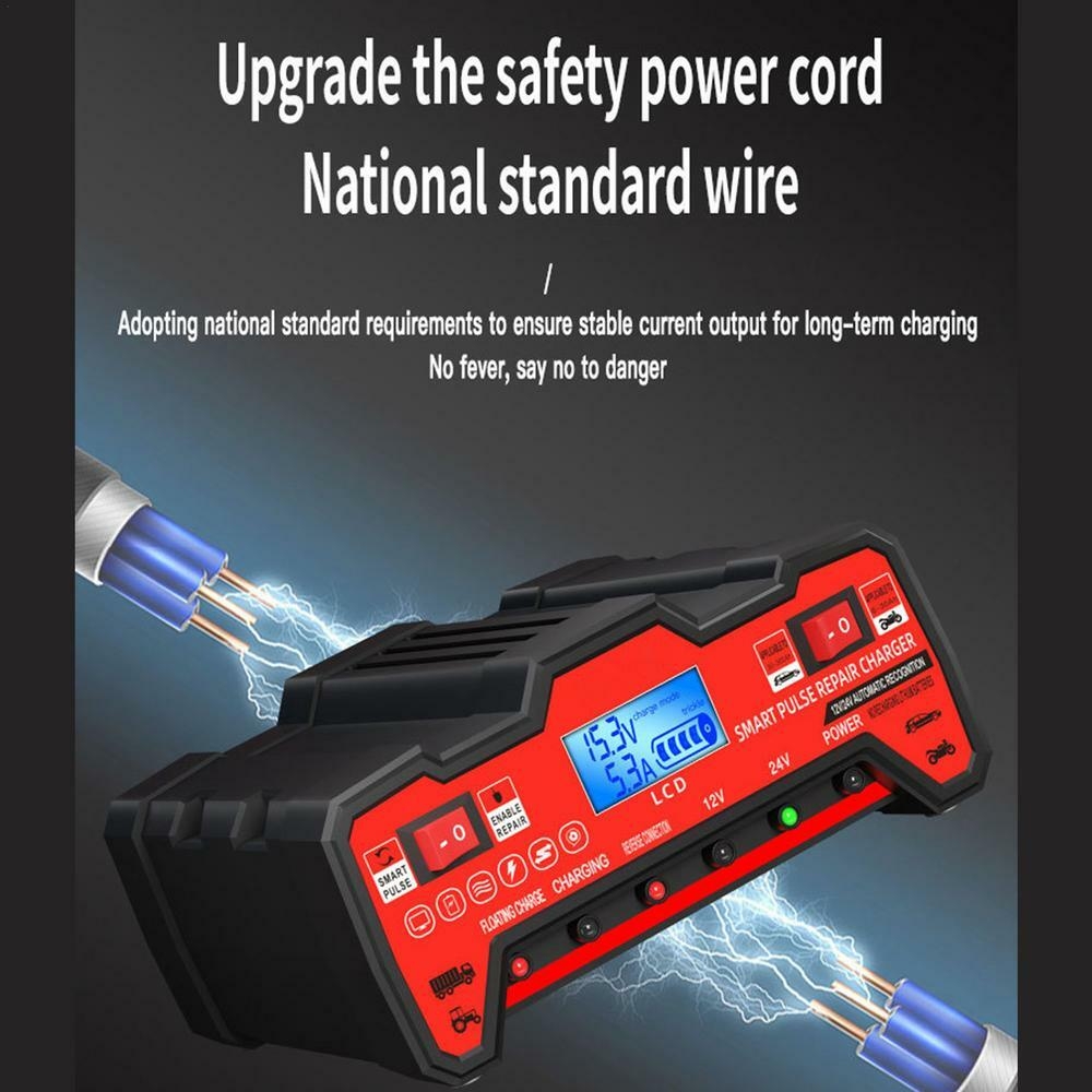 Charge sécurisée : Profitez d'une expérience de charge sécurisée avec notre chargeur de batterie automobile. Équipé d'un écran LCD intuitif et d'un voyant lumineux intelligent, il affiche clairement les informations sur la batterie et l'état de charge.