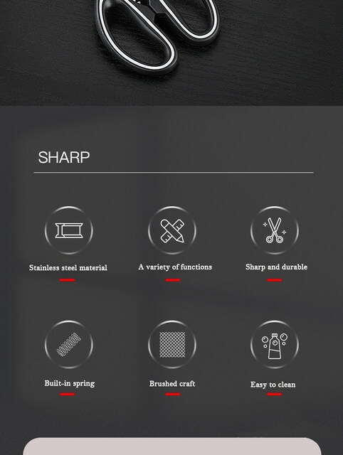 Applicable:Cuisine, bar, hôtel, cisaille les légumes, cisaille la mâchoire du poisson, ventre de poulet rasé, pince le noyer, chef, ciseaux multifonctionnels