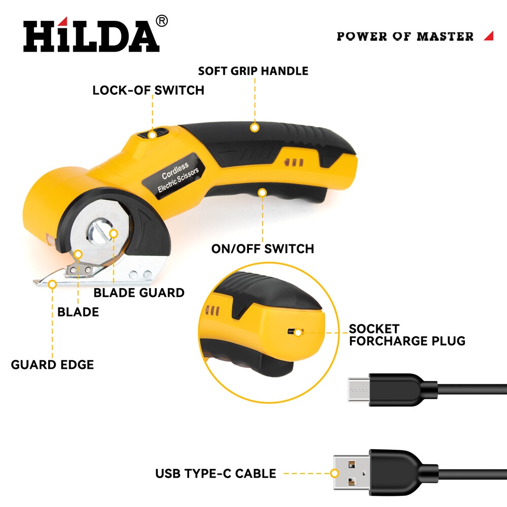 【Sécurité renforcée】Il suffit d'appuyer sur l'interrupteur de sécurité et de le maintenir enfoncé, puis de tirer sur la gâchette pour mettre en marche ces ciseaux électriques sans fil. La fonction de verrouillage automatique garantit un fonctionnement continu, tandis que la lampe LED intégrée permet de couper en toute sécurité même dans l'obscurité : parfaits pour une utilisation comme cutter électrique pour carton, coupe-tissu rotatif ou coupe-moquette.