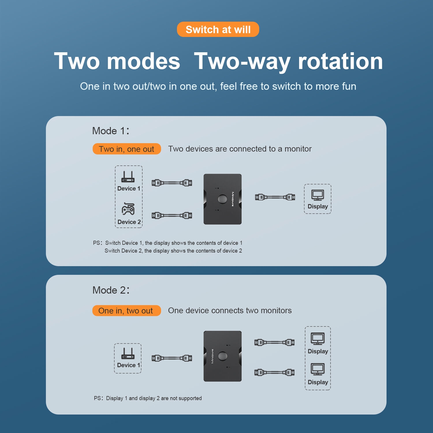 Le commutateur HDMI Mindpure est conçu pour offrir simplicité d'utilisation et hautes performances. Doté d'une conception plug-and-play, il ne nécessite aucun pilote ni alimentation supplémentaire pour la plupart des appareils ; une simple pression sur un bouton permet de basculer facilement entre les sources de signal. Sa transmission de signal haute vitesse et ses connecteurs HDMI plaqués or garantissent des connexions stables, une faible perte de signal et une durabilité exceptionnelle. Son boîtier compact en alliage d'aluminium assure une excellente dissipation de la chaleur et une grande robustesse, tandis que son design élégant s'intègre harmonieusement à tout intérieur, que ce soit à la maison ou au bureau.