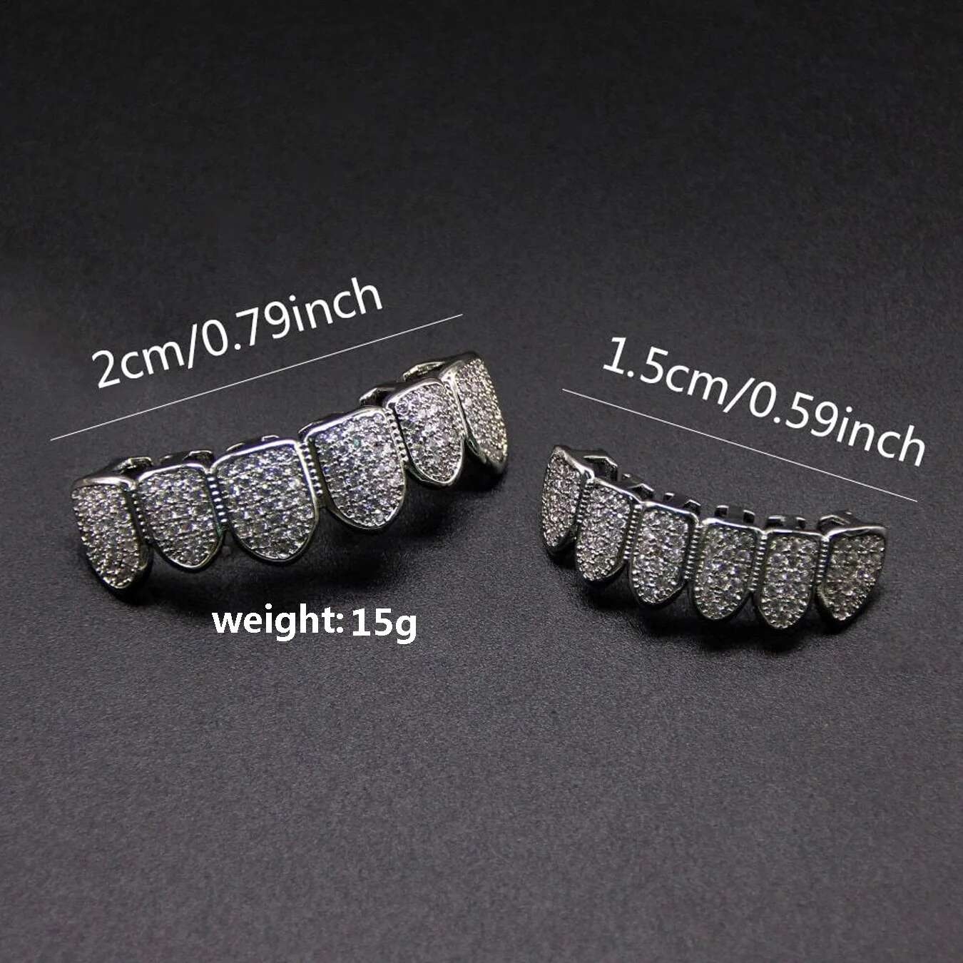 Fabriqué en laiton durable et sûr avec une finition galvanisée de longue durée, ces g rillz ne se faneront pas ou ne se terniront pas facilement, assurant une brillante brillance à chaque fois que vous les portez. L'ensemble comprend à la fois les dents supérieures et inférieures g rillz, offrant un look complet glacé qui est parfait pour les fêtes, les vidéos musicales, les concerts et les séances photo.