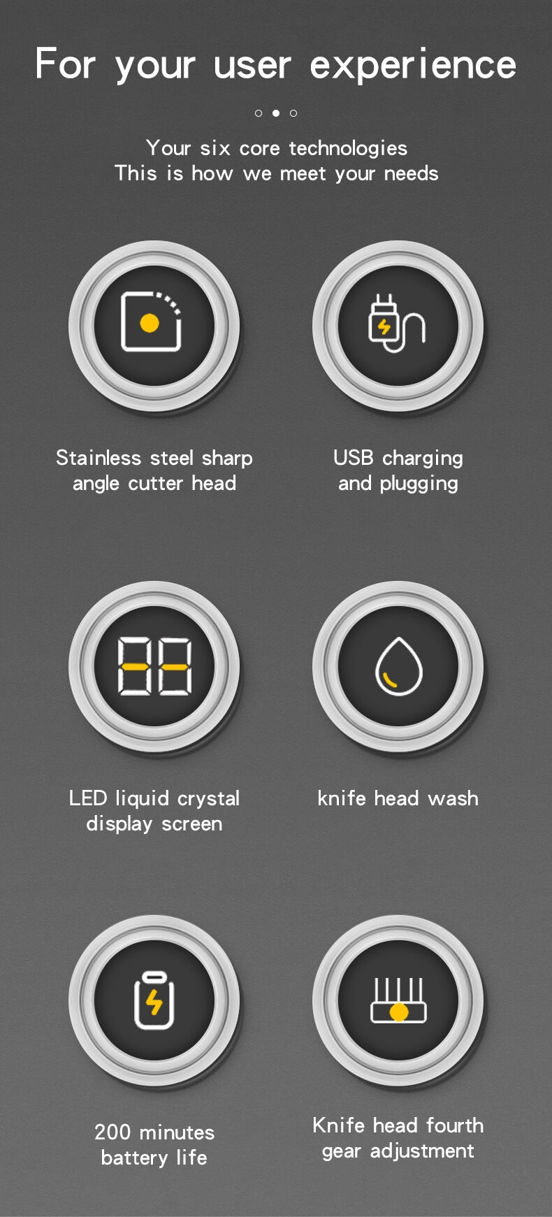 Les lames de précision en acier inoxydable offrent une coupe nette et précise à chaque fois, sans tiraillement ni accroc. L'écran numérique LED intelligent vous permet de surveiller facilement l'autonomie, l'état de charge et le mode de fonctionnement. Le moteur à couple élevé assure un fonctionnement fluide tout en maintenant un faible niveau sonore, ce qui le rend idéal pour une utilisation à domicile comme en salon.