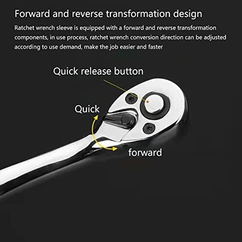 Le cliquet à denture fine, le système de verrouillage par bouton-poussoir et le système de déverrouillage rapide empêchent les douilles de tomber. Utilisation polyvalente : Conception unique en acier inoxydable. Convient pour garage, voiture, moto, bateau. Peut être utilisé dans l’industrie automobile, pour l’entretien ménager, les loisirs créatifs et le bricolage.