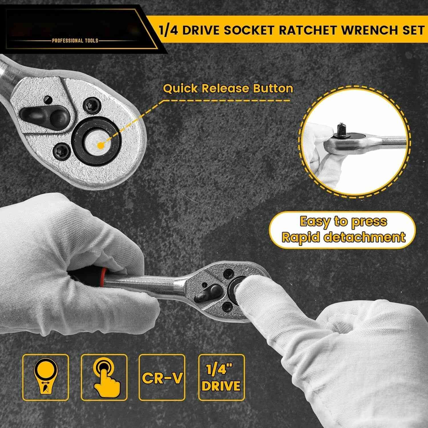 ♞ Nombreuses applications : Ce kit de clés à cliquet est idéal pour le bricolage, la menuiserie, la construction, la réparation automobile, la charpenterie et autres projets de bricolage. Que vous soyez un bricoleur professionnel ou un amateur, ce kit répondra à tous vos besoins.