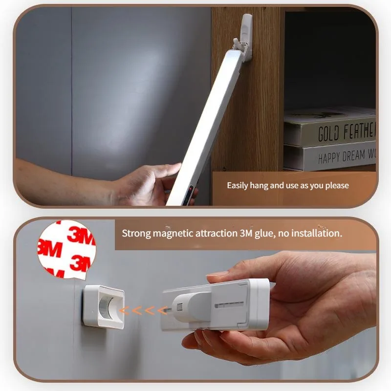Cette lampe LED est portable et flexible, adaptée aux endroits tels que les cuisines, les plans de travail, les placards, les armoires, les cages d'escalier, les couloirs, les sous-sols, les ateliers, les garages, etc. Elle peut être utilisée non seulement comme éclairage à détecteur de mouvement ou éclairage de maquillage en intérieur, mais aussi comme éclairage de camping en extérieur.
