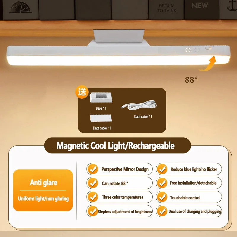 Large gamme d'utilisations : Cette lampe de bureau peut être utilisée pour la lecture et le travail dans les salles d'examen, les dortoirs universitaires, les bureaux à domicile, les cuisines, les garages, les miroirs de maquillage et comme veilleuse près des chambres. Elle peut également servir de lampe de poche pour camper dans l'obscurité.