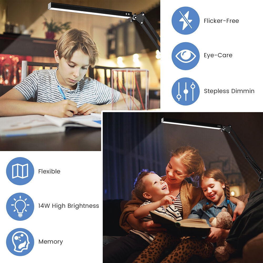 3 modes d'éclairage et variateur d'intensité à 10 niveaux : Cette lampe de bureau LED respectueuse des yeux propose 3 températures de couleur (3000 K-6000 K) et 10 niveaux de variateur, avec une luminosité de 10 % à 100 %, améliorant ainsi efficacement l'efficacité au travail. Elle est idéale pour la lecture, la maison et le bureau.