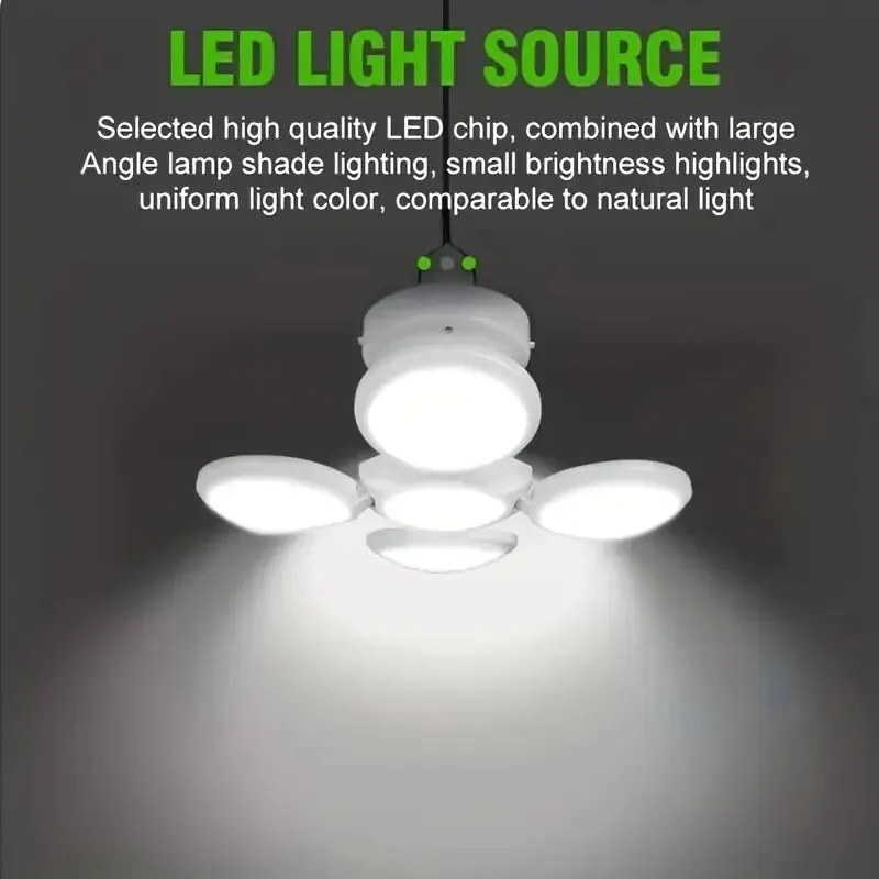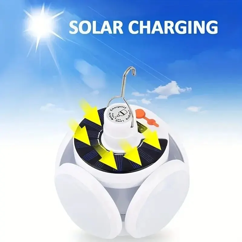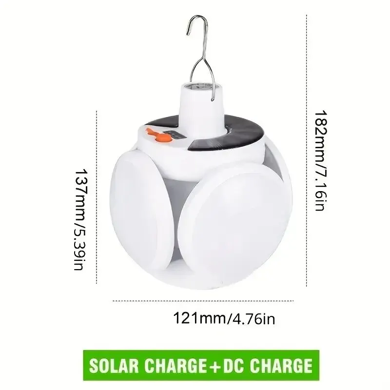 1. Ampoule pliable en forme de ballon de football : Notre lampe de camping arbore un design unique en forme de ballon de football et intègre 45 LED pour une lumière ultra-puissante. Grâce à ses 4 panneaux d'éclairage pliables, elle peut éclairer à 360 degrés.