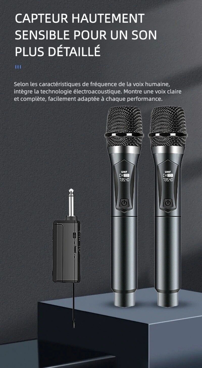 Profitez de moments de chant avec vos amis et votre famille grâce à ce système de microphone sans fil double. Idéal pour les soirées karaoké et les réunions conviviales.