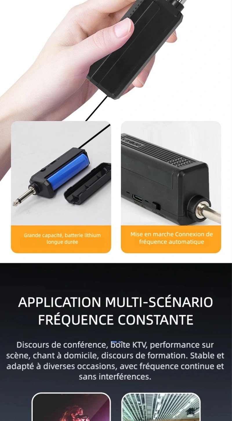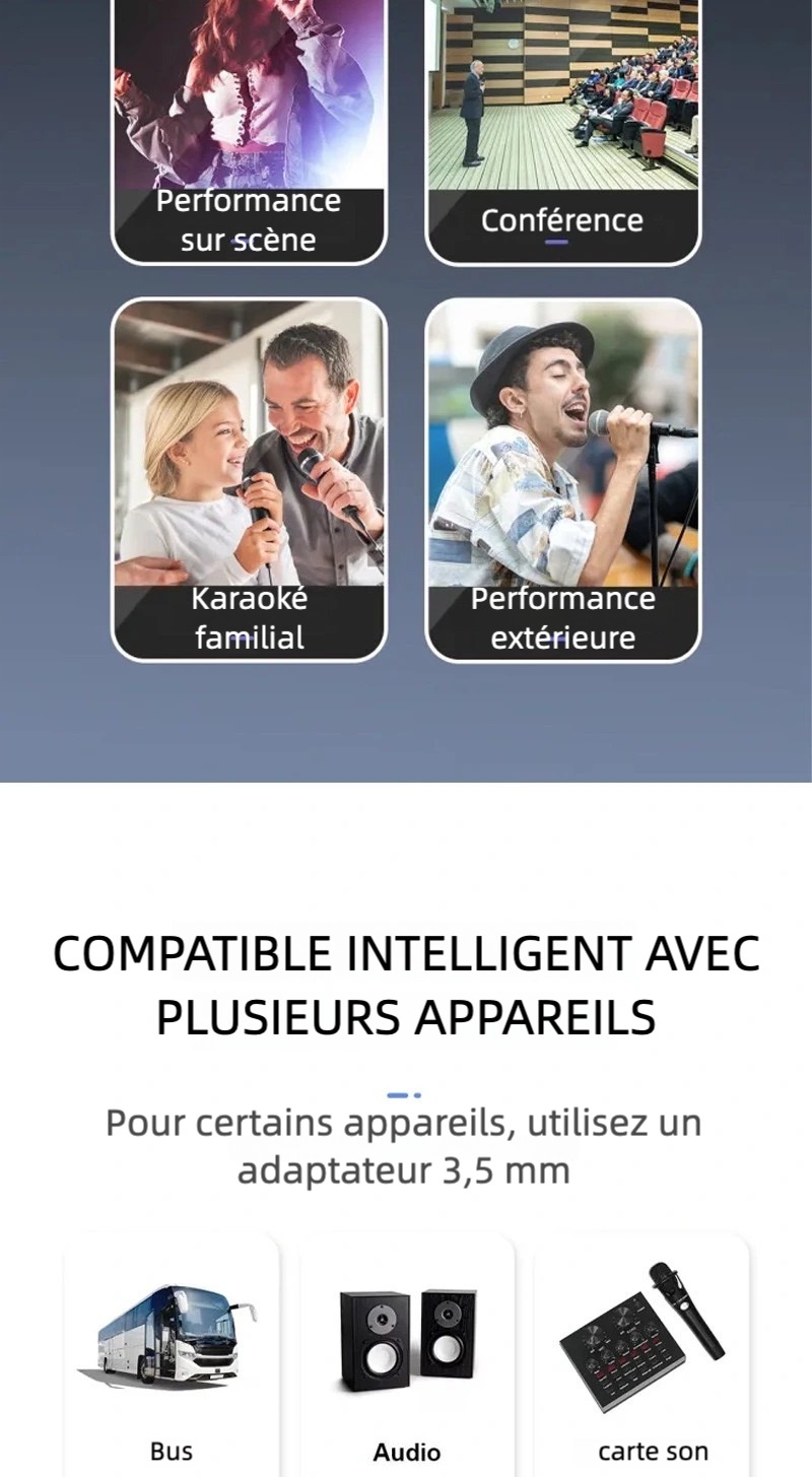 Le récepteur du microphone sans fil peut être facilement connecté à des enceintes, amplificateurs ou systèmes audio pour un son puissant lors d’événements.