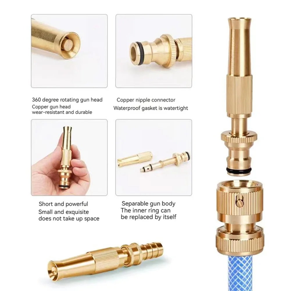 Pistolet pulvérisateur de lavage de voiture haute pression avec tuyau de 10 m, pulvérisateur de tuyau d'arrosage en métal, pistolet d'irrigation multifonctionnel pour le lavage des voituresCaractéristiques :1. Buse haute pression : découvrez la puissance de notre pistolet pulvérisateur de lavage de voiture, équipé d'un jet puissant capable de s'attaquer à tout, de la saleté tenace à l'arrosage doux du jardin, répondant à tous vos besoins de nettoyage extérieur.2. Contrôle du débit sans effort : notre pistolet à eau de jardin est doté d'une poignée en laiton pour un réglage facile du débit, avec un filetage GHT pour une fixation simple à n'importe quel tuyau d'arrosage standard de 11 à 14 mm, garantissant une configuration transparente pour vos tâches de nettoyage.3. Construction en laiton : notre lave-auto portable est construit avec une structure en laiton massif, garantissant une utilisation intensive sans rouille ni fuite, et est conçu pour durer des années sans les fissures courantes dans les pièces en plastique ou en caoutchouc.4. Fonctionnalité polyvalente : qu'il s'agisse d'arroser le jardin, de nettoyer votre véhicule, de rafraîchir l'allée, de baigner votre animal de compagnie ou de laver les terrasses, notre pulvérisateur de tuyau d'arrosage en métal est conçu pour tout faire avec efficacité et facilité.5. Fixation facile du tuyau : le pistolet d'irrigation à eau est soigneusement conçu avec une vanne d'arrêt de tuyau, ce qui le rend incroyablement facile à gérer le débit d'eau et à connecter à votre tuyau, offrant une expérience de nettoyage sans tracas.
