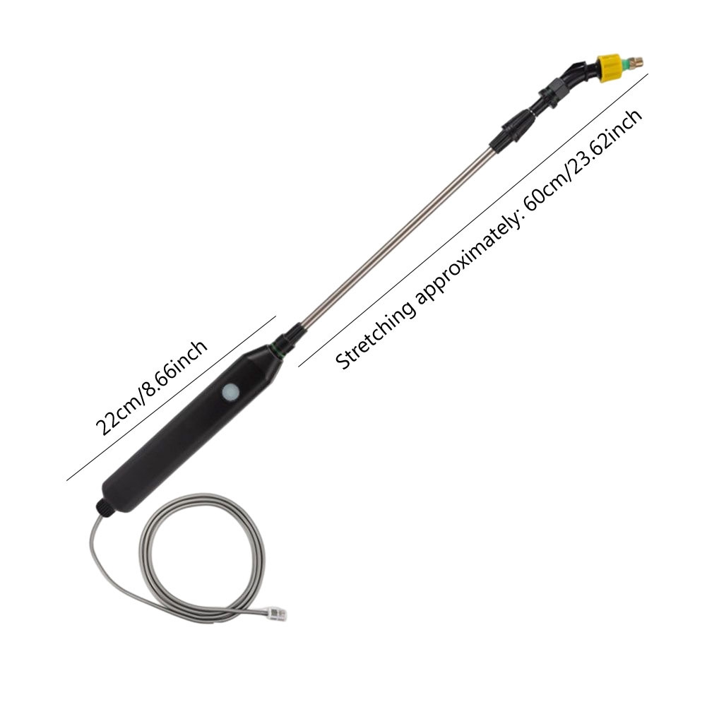 - ✔ Pulvérisation à une seule main : cette baguette de pulvérisation alimentée par batterie est légère et facile à transporter d'une seule main. Vous pouvez facilement le faire pivoter pour pulvériser vos plantes, fleurs ou cultures sans aucun problème.