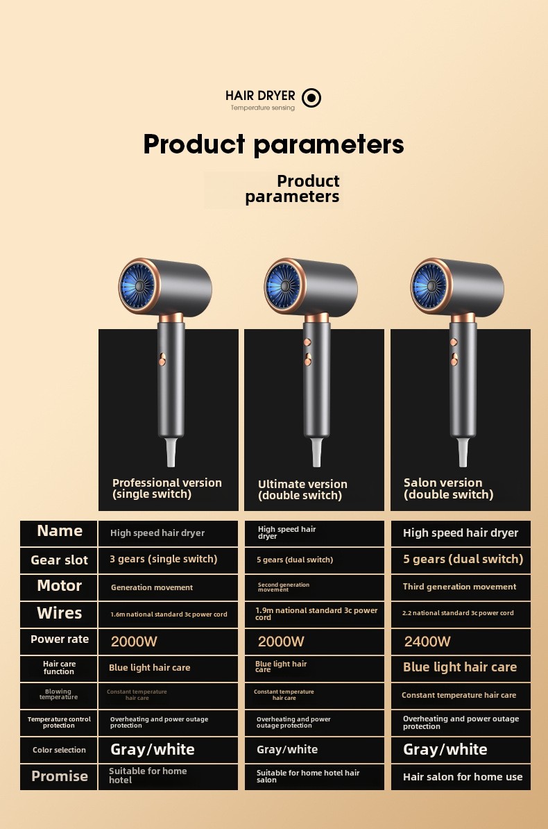 2400W High-Power Performance: With a robust DC motor and 2400W rated power, this hair dryer delivers quick and efficient drying. Achieve smooth, frizz-free hair in no time.