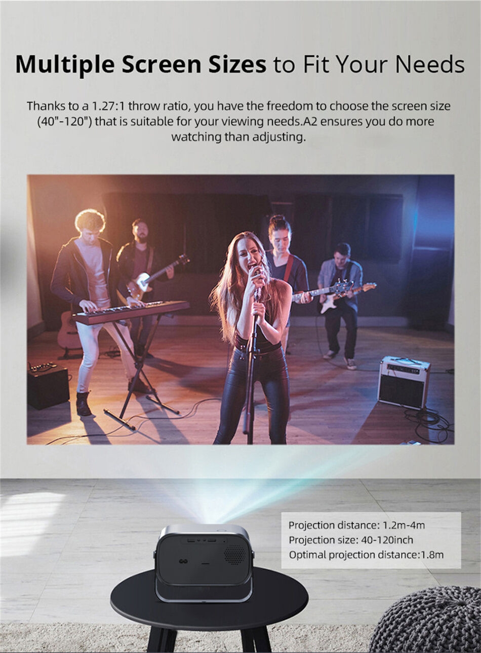 Bluetooth 5.0 : Compatible avec la technologie Bluetooth 6 et la double bande 2,4 GHz/5 GHz, ce projecteur assure une connectivité optimale avec les smartphones et les ordinateurs.