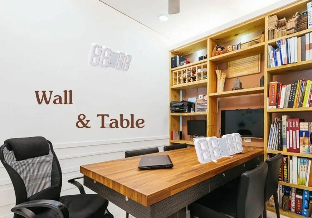 [Wall clock/desktop clock] une horloge numérique belle et à la mode qui peut également être utilisée comme une horloge murale ou une horloge de bureau. Il peut être placé dans diverses scènes telles que le salon, la chambre à coucher, le bureau, le bureau, la table à manger, l’armoire de télévision, etc. il a des entailles sur le dos pour le montage, le support est amovible, peut être facilement accroché au mur comme une horloge murale, ou le placer sur le bureau arbitrairement.