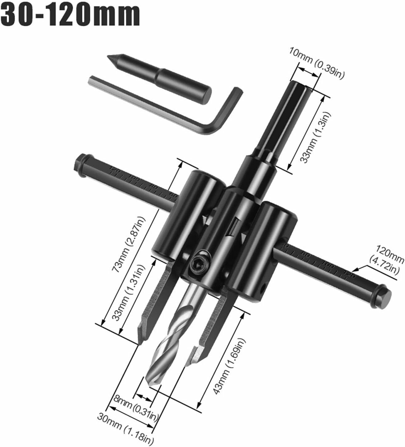 ✔ Large plage de réglage : Permet de percer des trous de 30 à 120 mm, couvrant la plupart des besoins de perçage pour le bricolage et la menuiserie