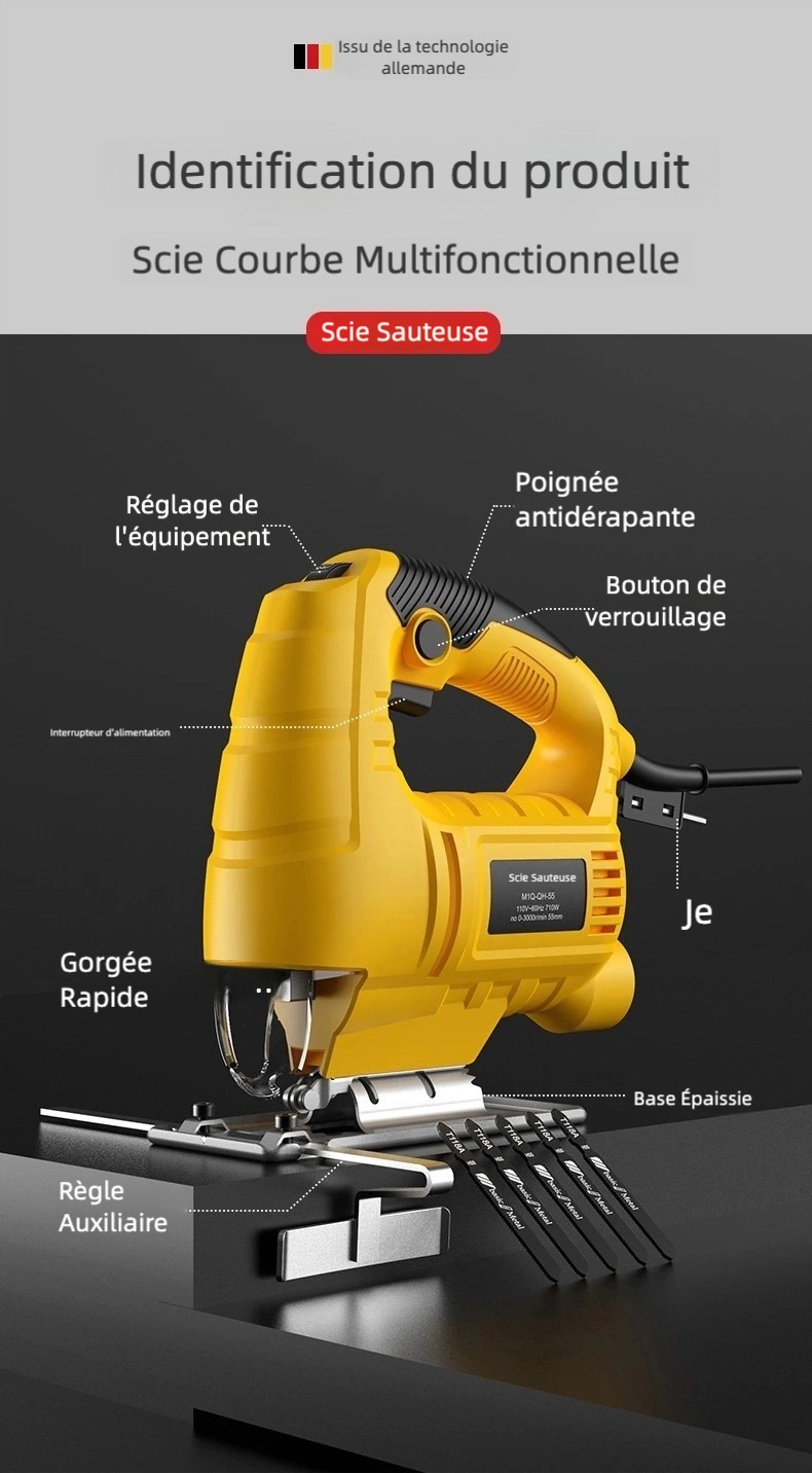 Cette scie sauteuse électrique filaire est idéale pour couper des planches en bois, du contreplaqué et des panneaux MDF. Elle permet des coupes précises et propres pour les projets de menuiserie et de fabrication de meubles.