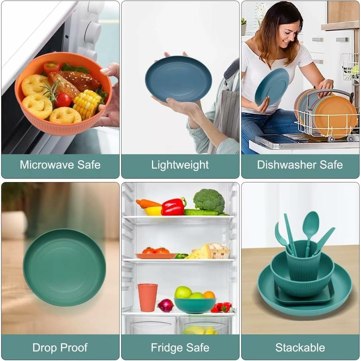 【Léger et empilable】 : Robuste et durable, cet ensemble ne se fissure pas et ne s’ébrèche pas comme la porcelaine ou la céramique. Léger, il convient aux enfants, aux adultes et aux personnes âgées. Son design compact, avec ses bords arrondis, permet un rangement facile et une table bien rangée.