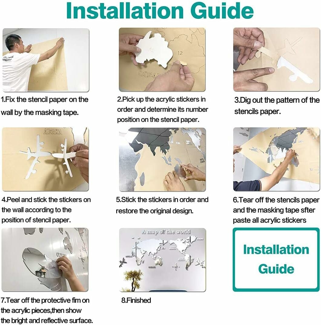 Kit autocollant mural 3D en acrylique carte du monde (doré, 180×100cm)