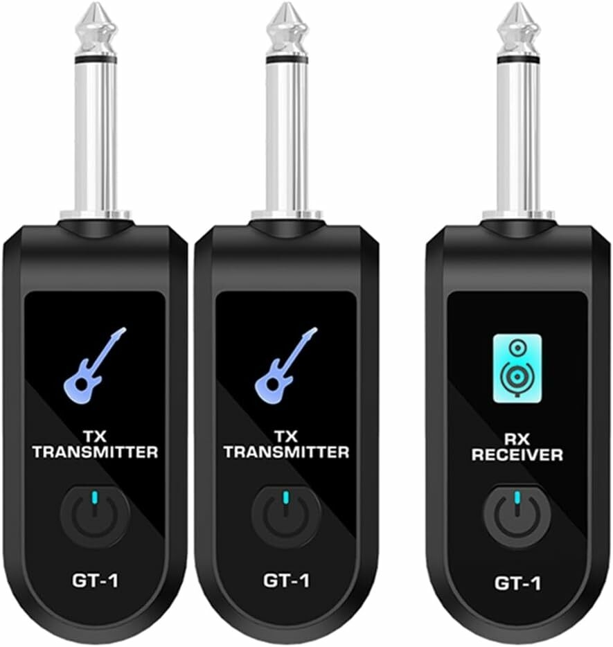 [Flexible et pratique] : Facilement compatible avec différentes guitares et autres instruments de musique. Aucun appairage requis ; il suffit de régler l'émetteur et le récepteur sur le même canal.