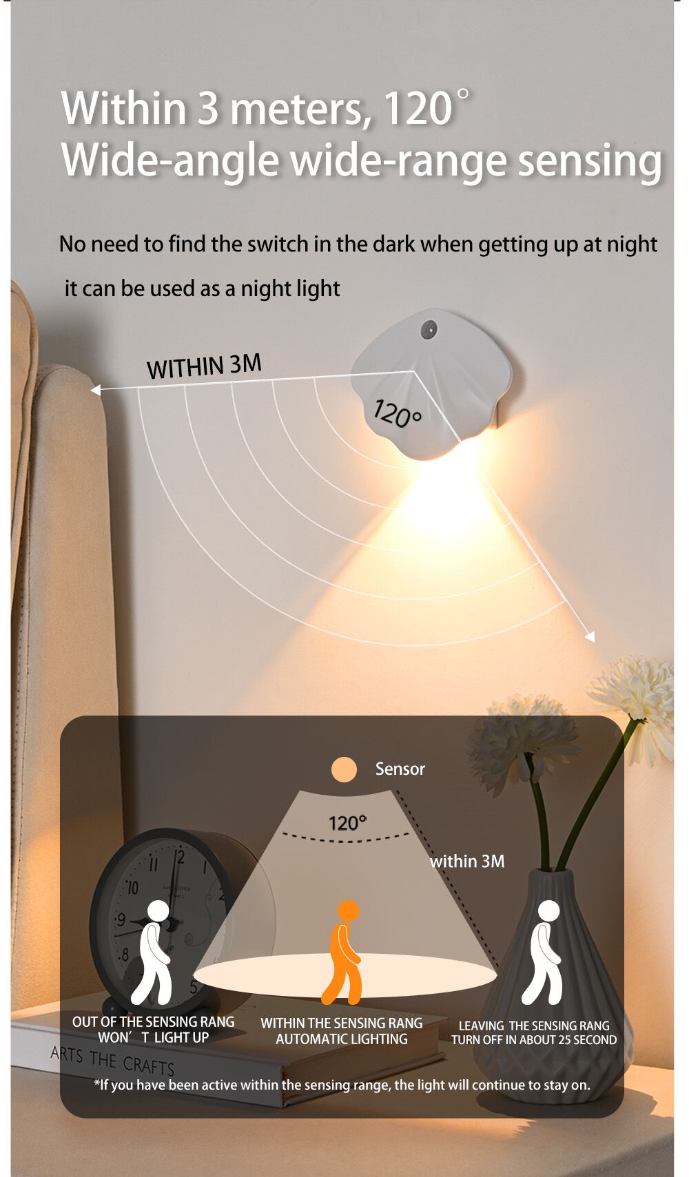 Cette applique à détecteur de mouvement présente un design élégant en forme de coquillage et est fabriquée avec des matériaux de haute qualité. Elle peut être détachée et utilisée comme lampe torche portable, ce qui la rend idéale pour une utilisation quotidienne et en cas d’urgence.