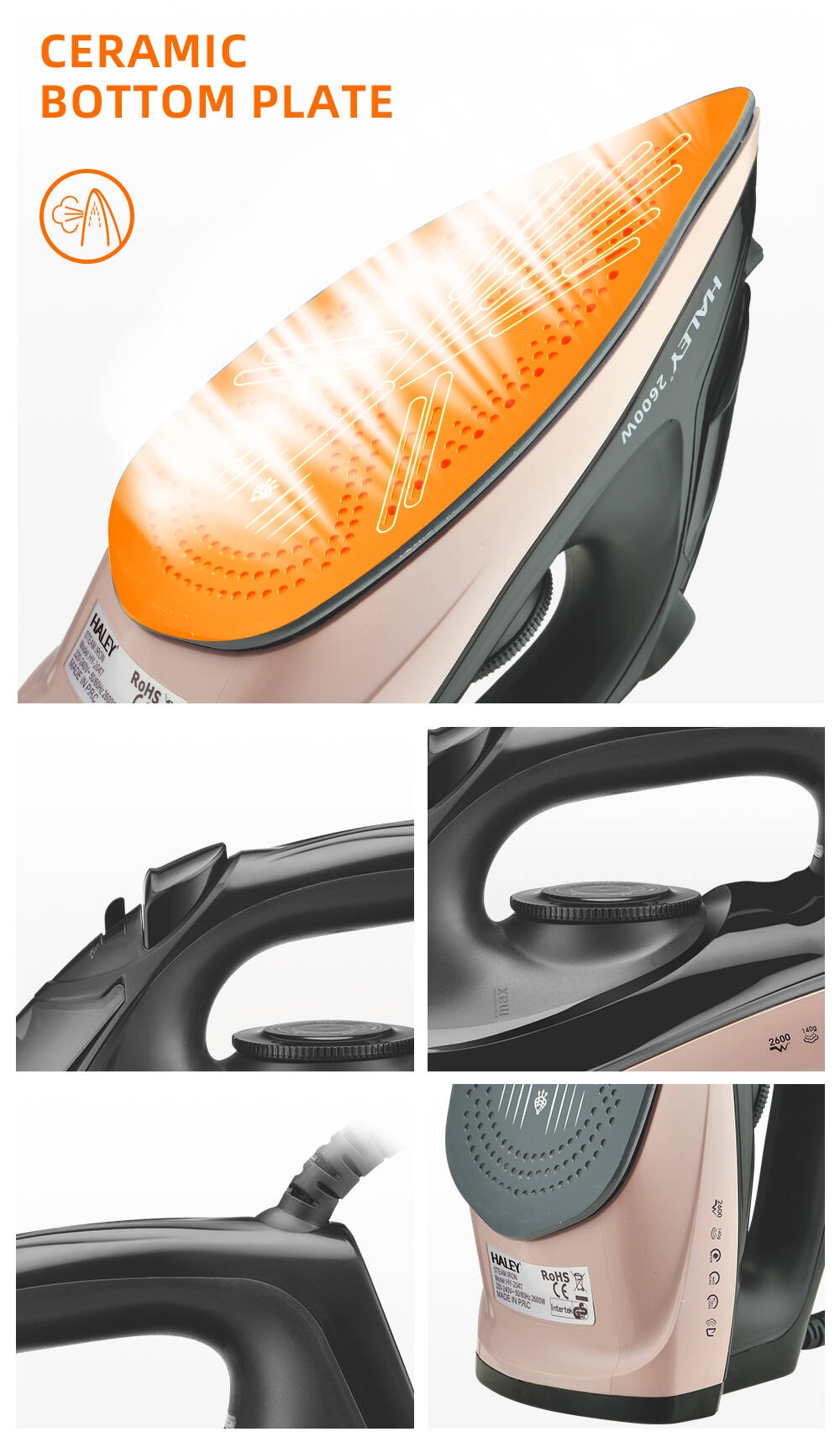 Le fer à repasser vapeur HALEY 2600W est conçu pour offrir une performance optimale au quotidien. Grâce à sa puissance élevée et sa vapeur efficace, il lisse parfaitement tous vos vêtements en quelques passages seulement. Son design moderne et sa prise en main confortable en font un outil indispensable à la maison.