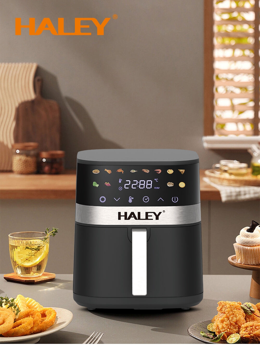 | Nom du produit | HALEY Friteuse électrique numérique haute capacité pour la friture Cuisinière multifonction Maison Petits appareils de cuisine Mini frites Friteuses à air comprimé |